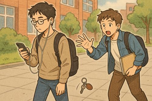 【No.】 938 【ストレッサー】 イヤホン聞いている歩行者 【内容】 落とし物をしてもそれに気づいた人が声をかけたのに、本人はイヤホンをつけており、走って届けるのを見てしまう 【分類】 E 身近な出来事 【効果】 ★★★ 【対処法】 歩行中に音楽をイヤホ…